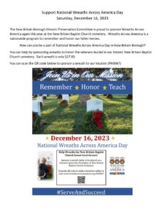 News and Event Blog Wreaths Across America – Saturday, December 16, 2023 Friday, Dec 15, 2023 New Britain Boro